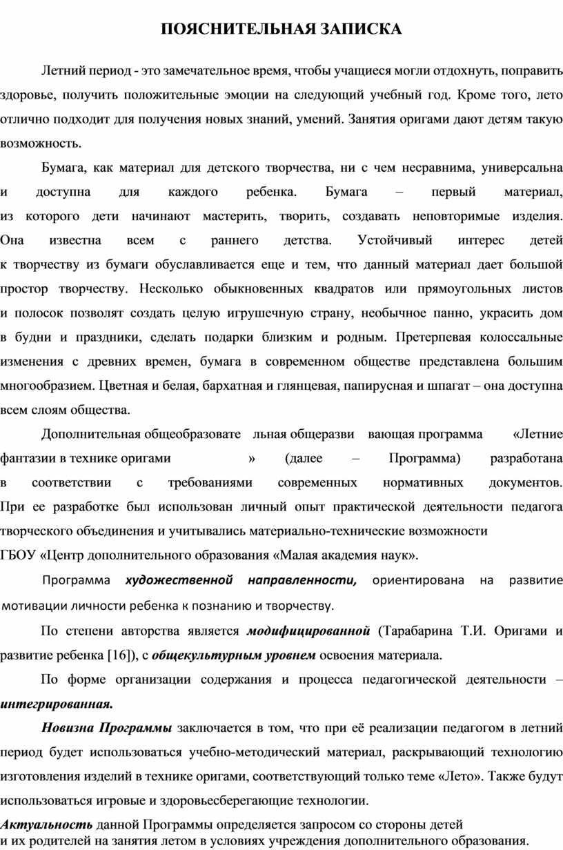 Летний период - это замечательное время, чтобы учащиеся могли отдохнуть, поправить здоровье, получить положительные эмоции на следующий учебный год. Кроме того, лето отлично подходит для получения новых знаний, умений. Занятия оригами дают детям такую возможность.