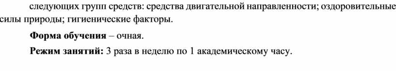 Режим занятий: 3 раза в неделю по 1 академическому часу.