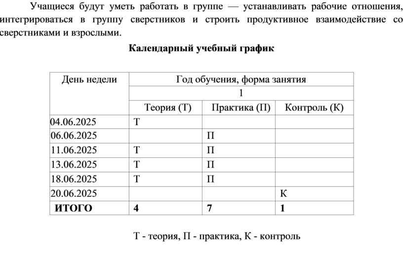 Т - теория, П - практика, К - контроль