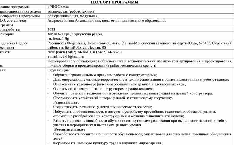 Дополнительная общеобразовательная общеразвивающая программа технической направленности «PROGress» ориентирована на создание необходимых условий для личного развития учащихся и их дальнейшего профессионального самоопределения. Также данная программа направлена на удовлетворение индивидуальных потребностей учащихся в научно-техническом творчестве.