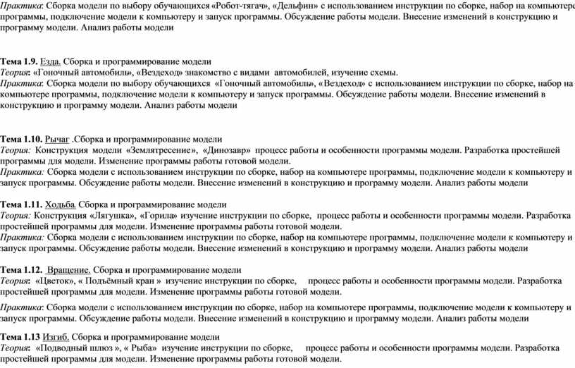 - конструктивные особенности различных моделей, сооружений и механизмов;