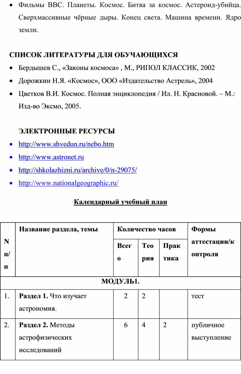 1. Теоретическая часть программы реализуется на занятиях в кабинете, при использовании литературы, фотографий и иллюстраций, карты звездного неба, школьного астрономического календаря, телескопа (для изучения), модели Солнечной системы, компьютера, компьютерных программ.