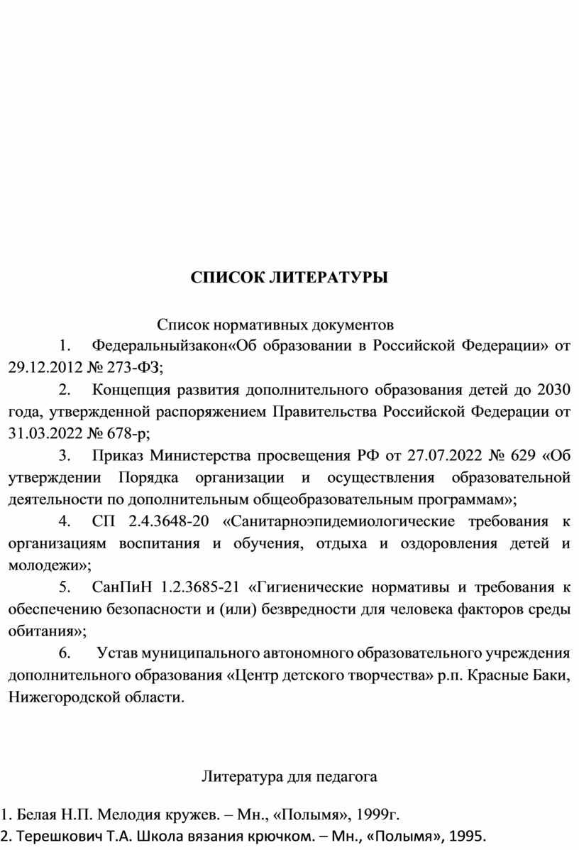 3. Приказ Министерства просвещения РФ от 27.07.2022 № 629 «Об утверждении Порядка организации и осуществления образовательной деятельности по дополнительным общеобразовательным программам»;