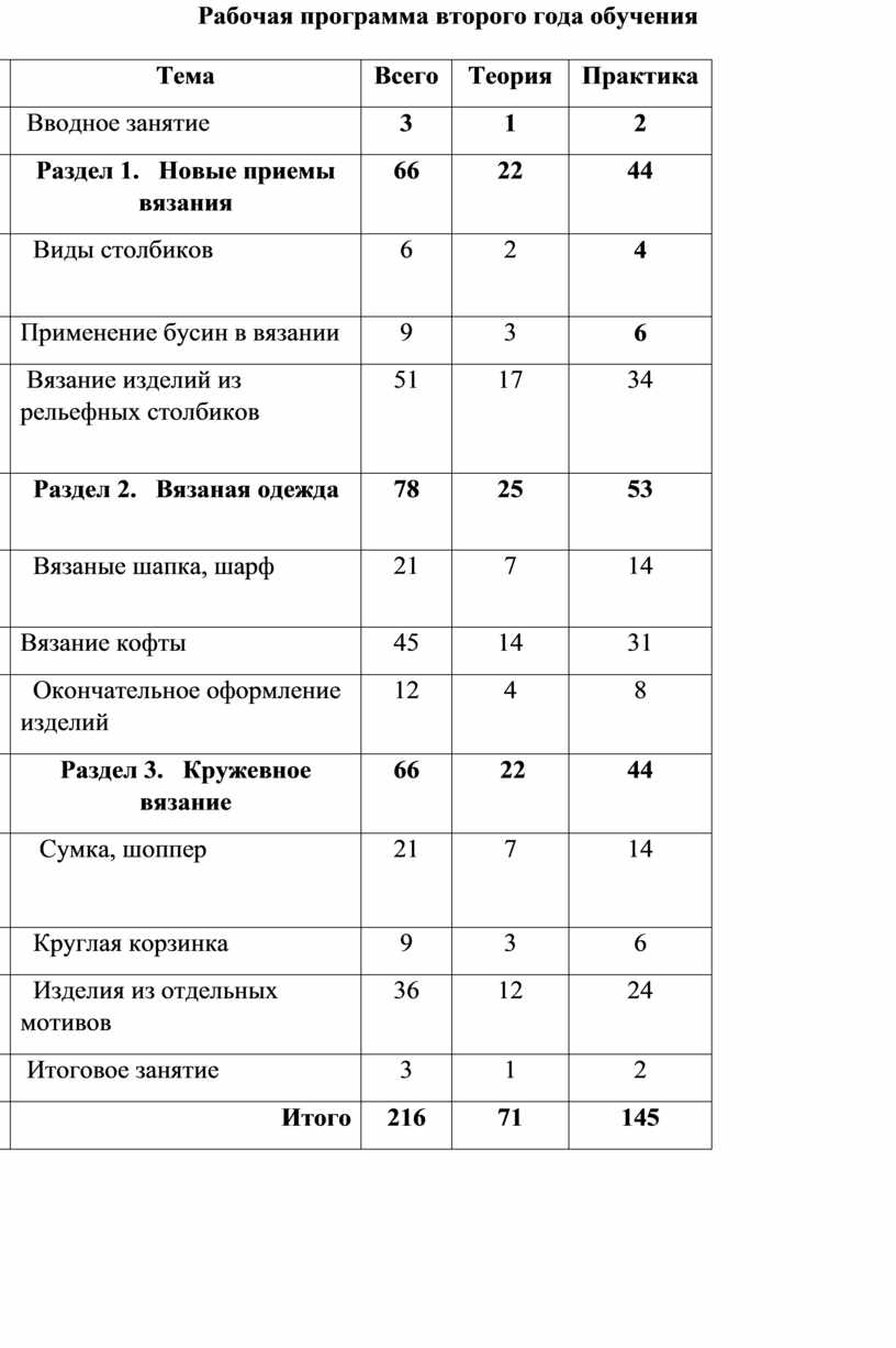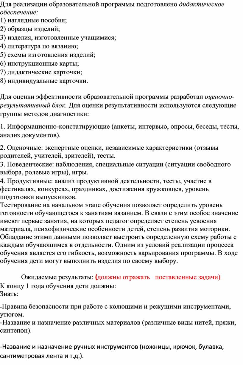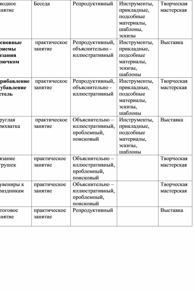2) Методы практической работы (вязание изделий, зарисовка схем, подготовка и участие в выставках).