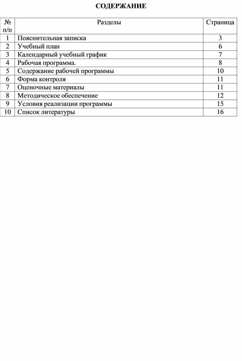 Содержание рабочей программы |