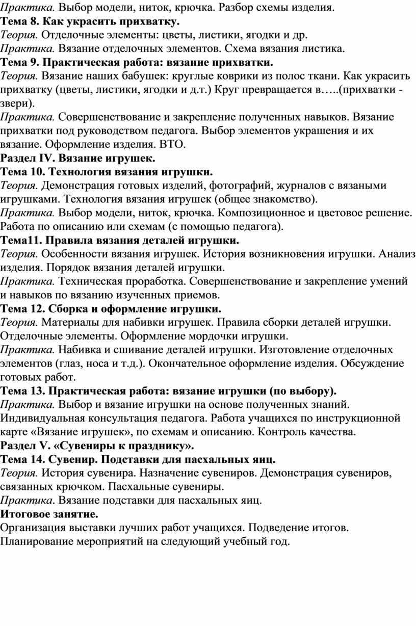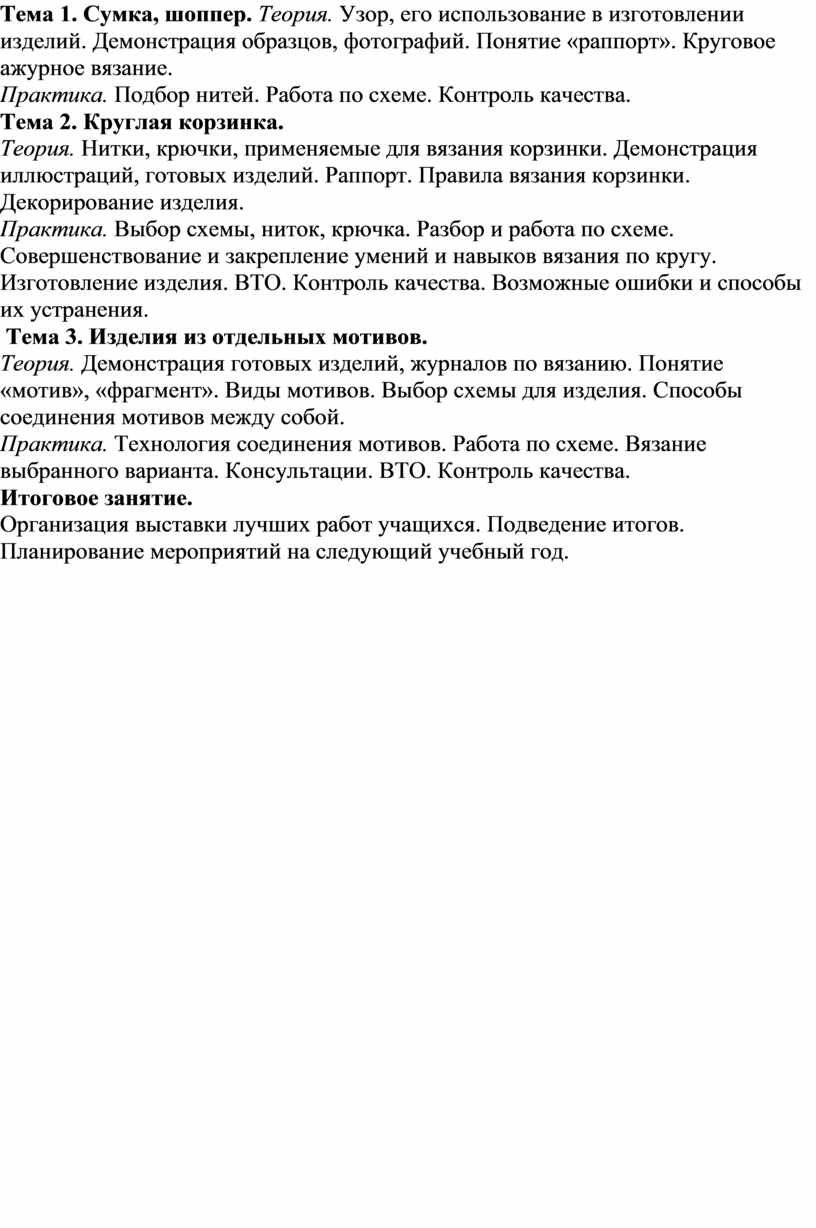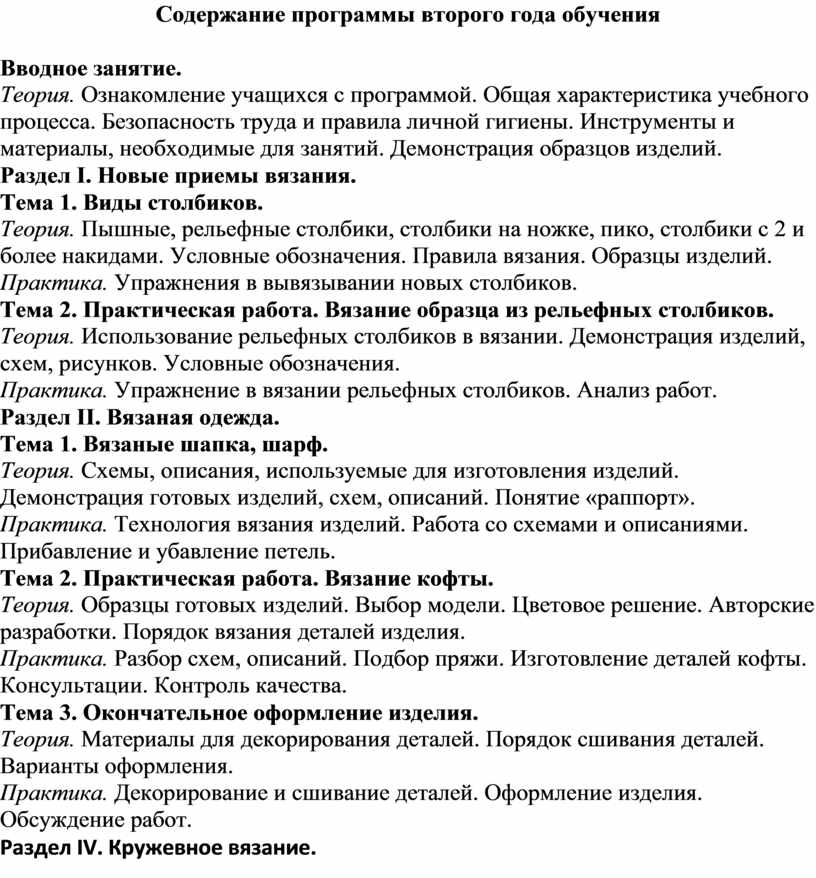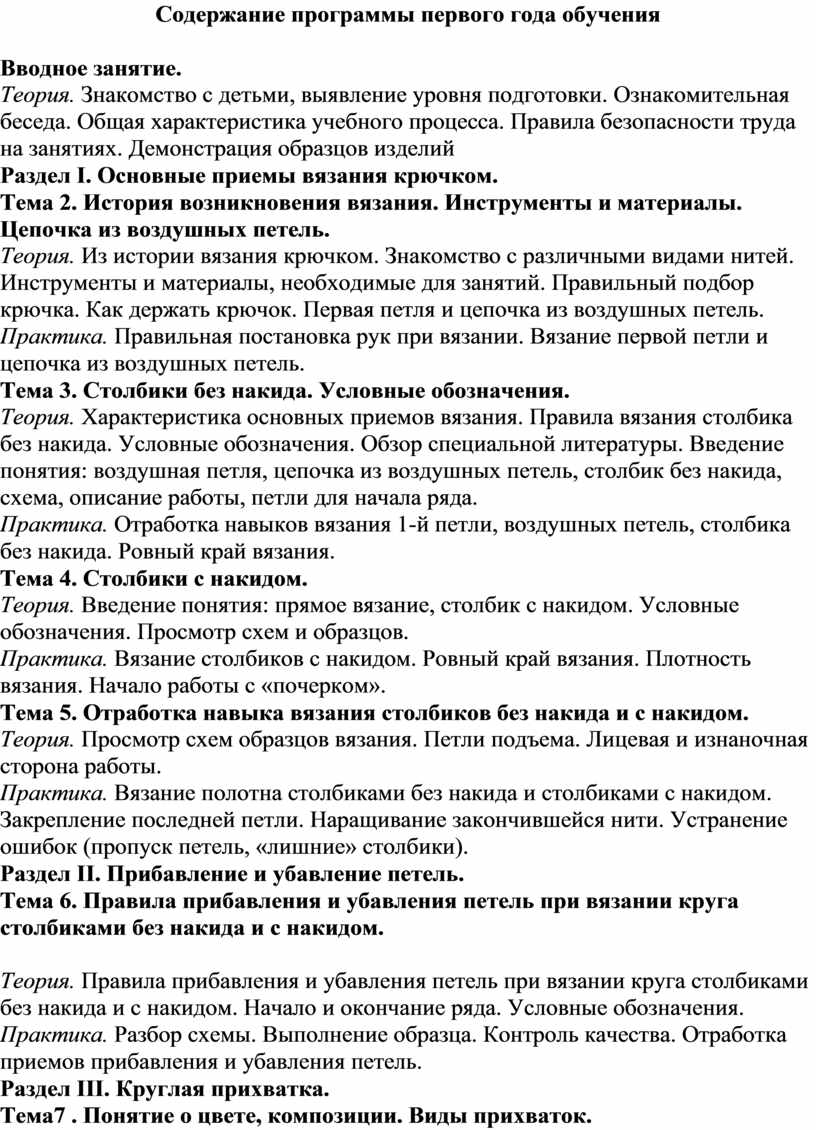 Цель программы: обучение основам и техникам вязания крючком.