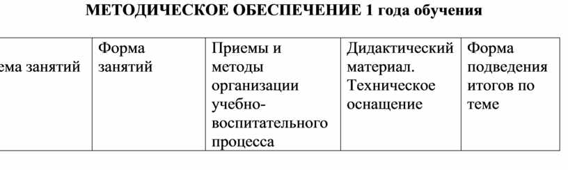 МЕТОДИЧЕСКОЕ ОБЕСПЕЧЕНИЕ 1 года обучения