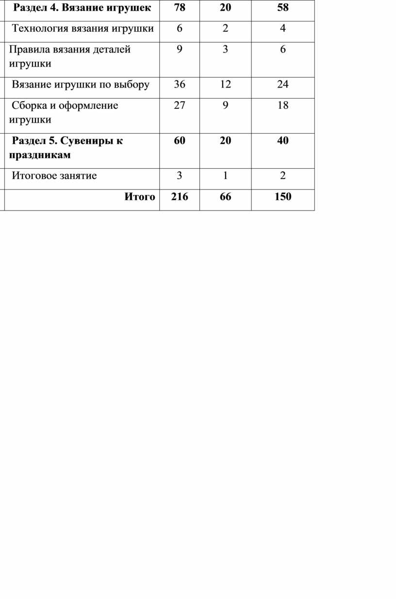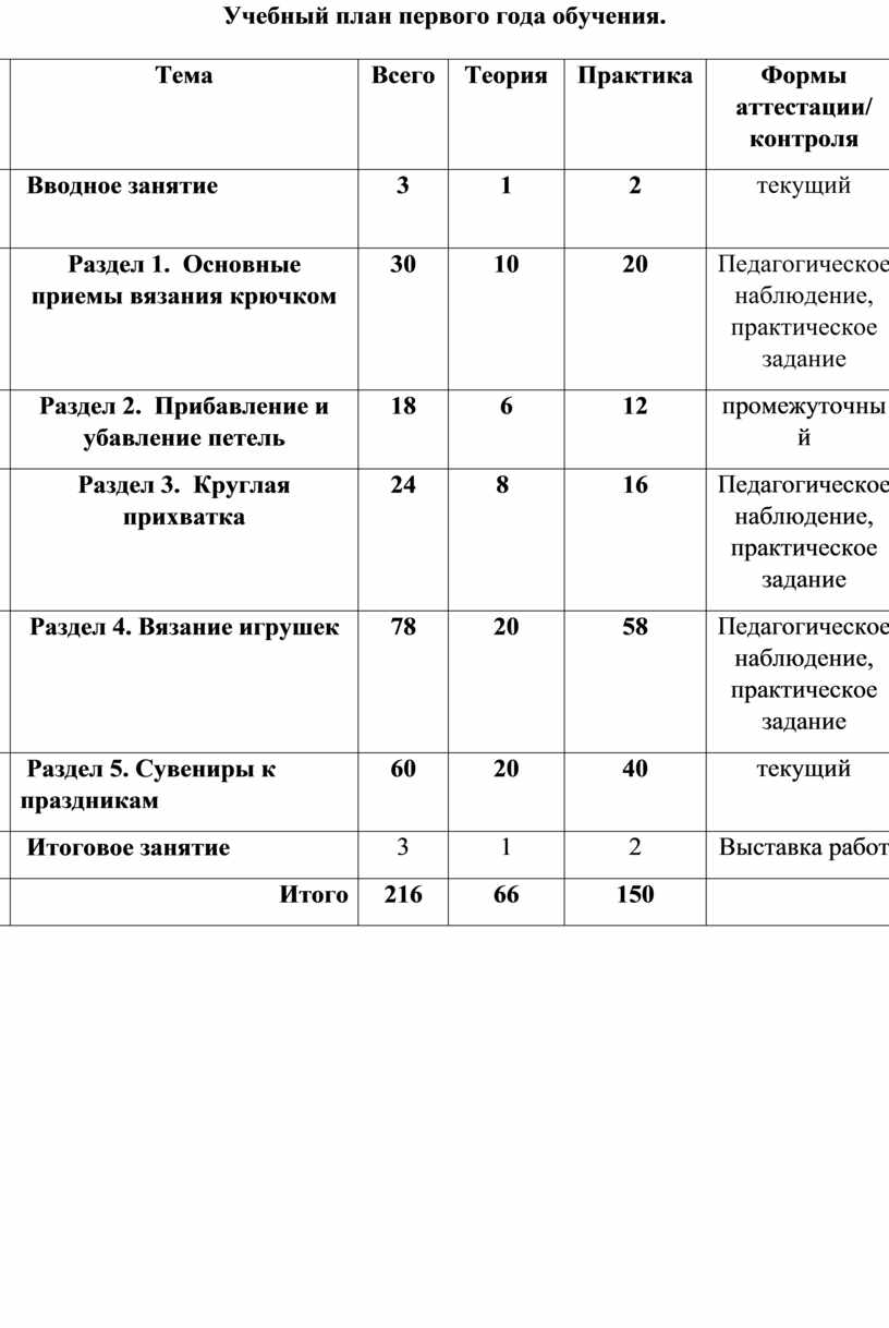 1-й год обучения – знакомство с материалом, правилами работы; знакомство с простейшими технологическими картами. Практическая деятельность носит репродуктивный характер с элементами самостоятельной работы. Наиболее привлекательным видом деятельности для детей младшего школьного возраста является игра, поэтому много времени отводится на вязание различных игрушек.