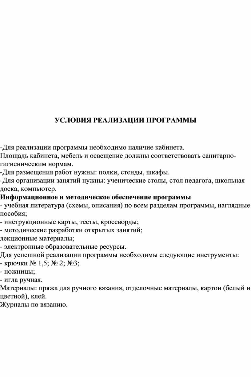 УСЛОВИЯ РЕАЛИЗАЦИИ ПРОГРАММЫ