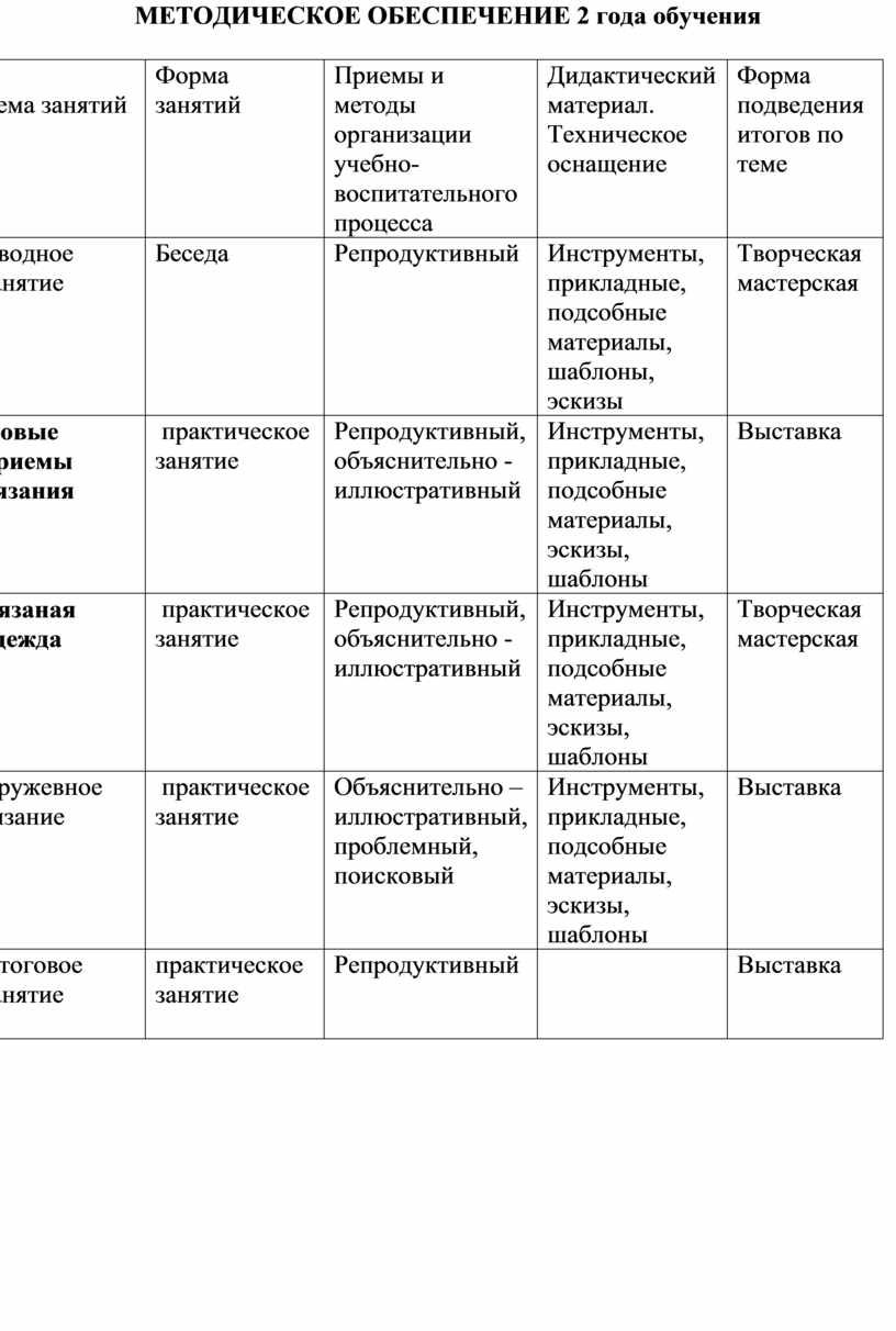 МЕТОДИЧЕСКОЕ ОБЕСПЕЧЕНИЕ 2 года обучения