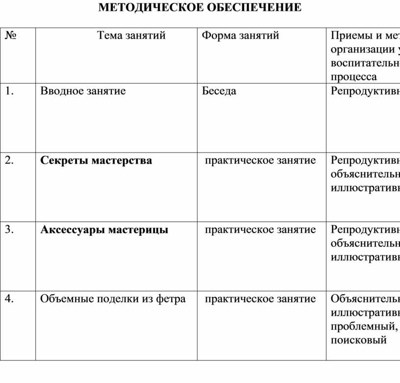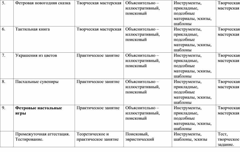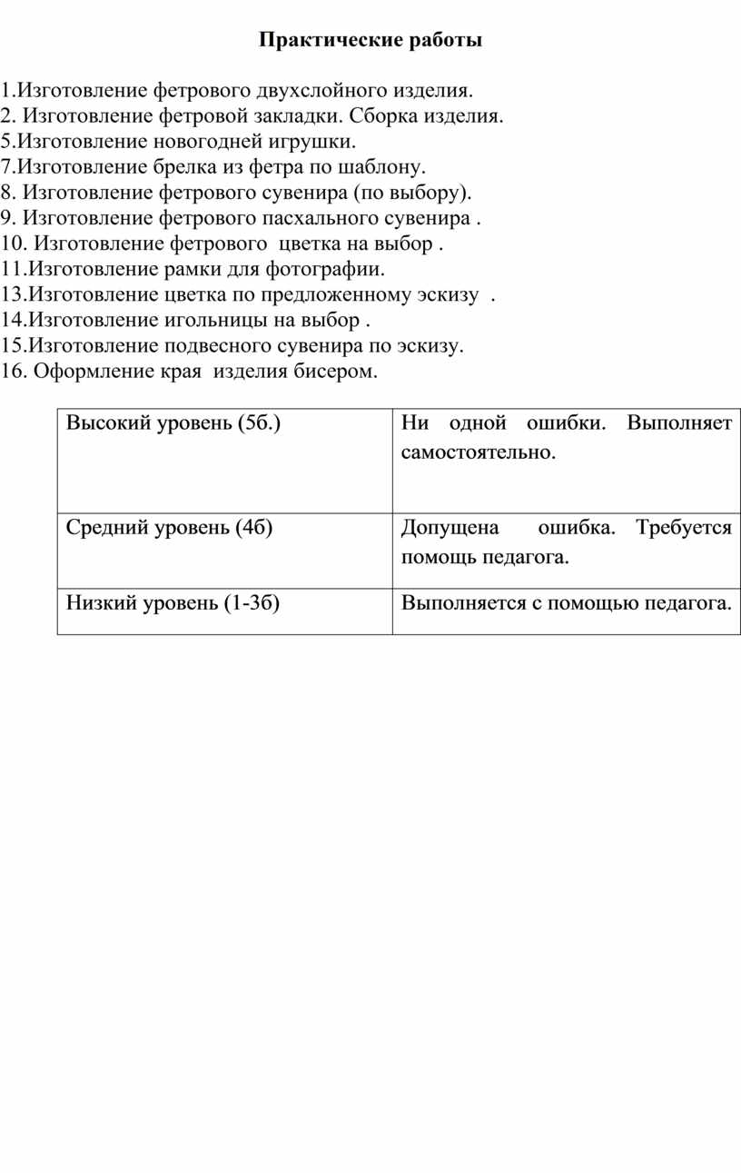 - работа с разнообразными материалами и инструментами, применяемыми при изготовлении изделий из фетра.
