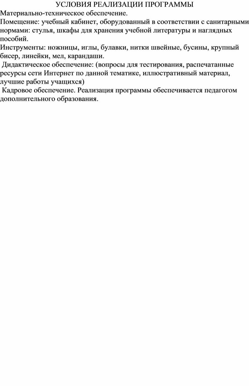 УСЛОВИЯ РЕАЛИЗАЦИИ ПРОГРАММЫ