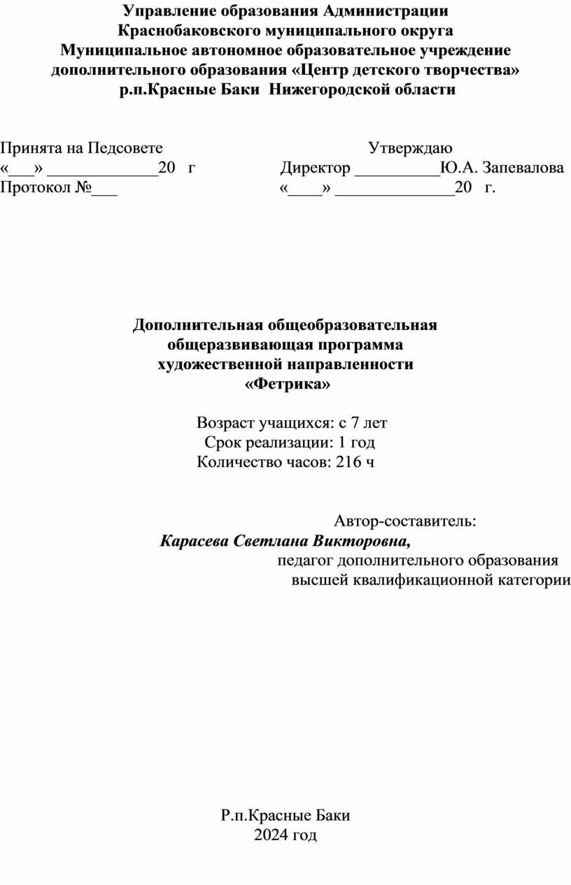 6. Устав муниципального автономного образовательного учреждения дополнительного образования «Центр детского творчества» р.п. Красные Баки, Нижегородской области.