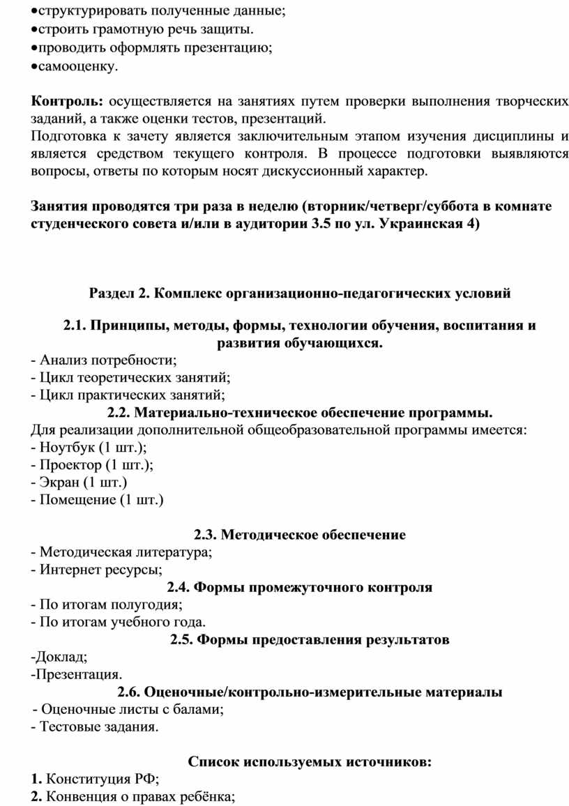 Раздел 2. Комплекс организационно-педагогических условий