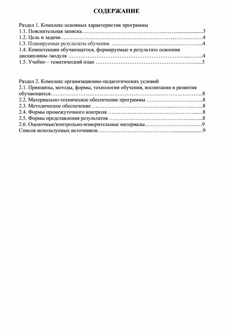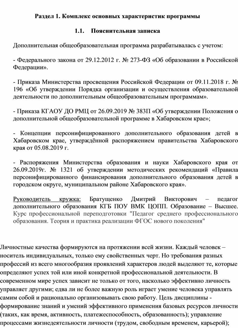Раздел 1. Комплекс основных характеристик программы