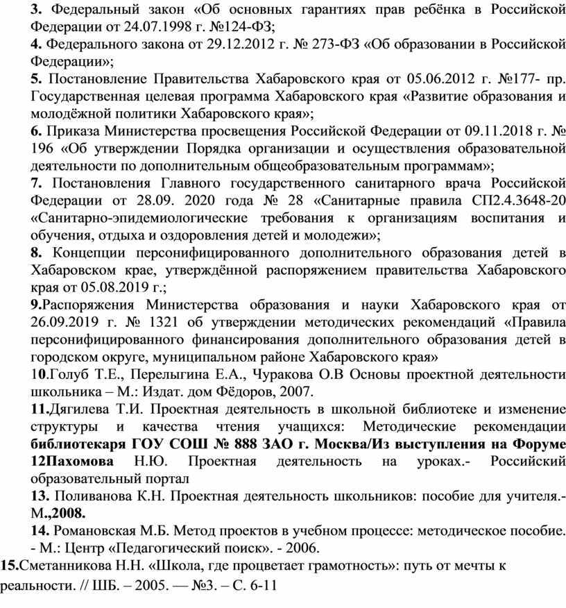 8. Концепции персонифицированного дополнительного образования детей в Хабаровском крае, утверждённой распоряжением правительства Хабаровского края от 05.08.2019 г.;