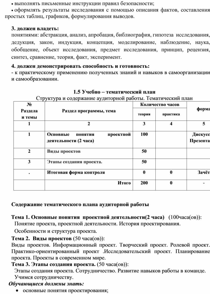 Тема 1. Основные понятия проектной деятельности(2 часа) (100часа(ов)):