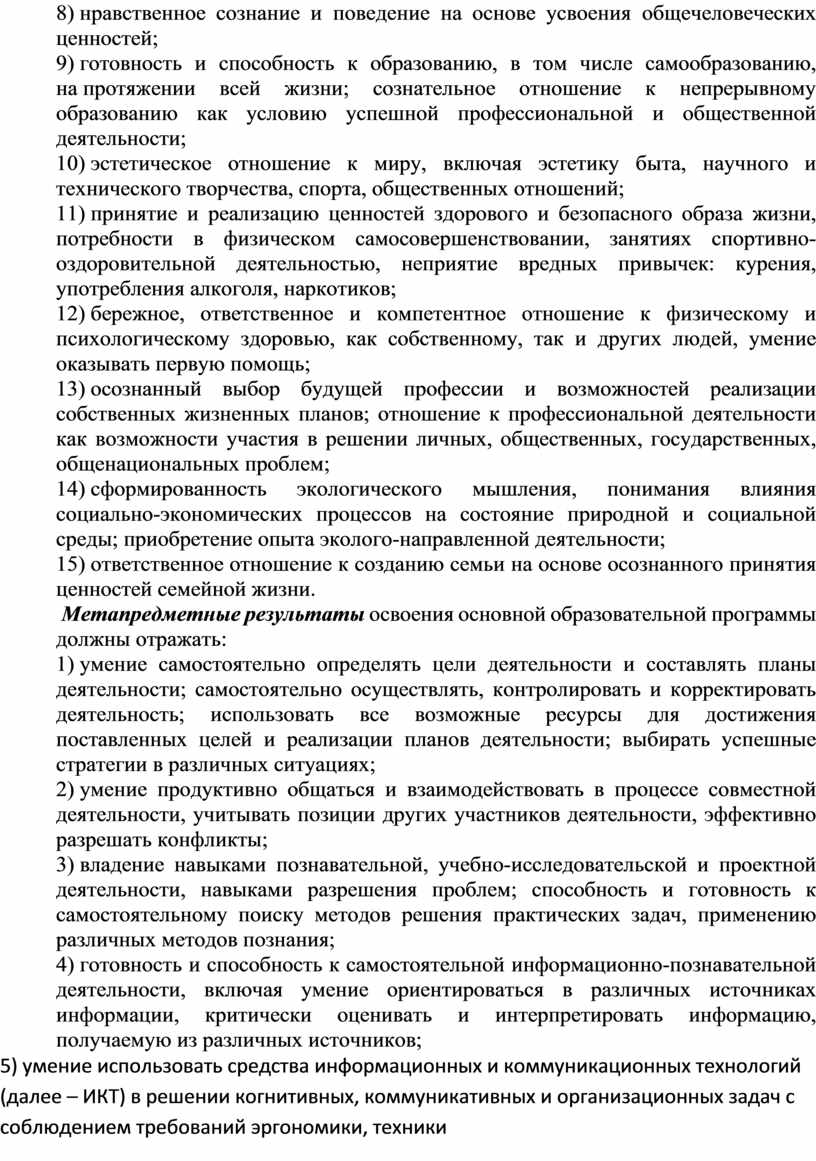 5) умение использовать средства информационных и коммуникационных технологий (далее – ИКТ) в решении когнитивных, коммуникативных и организационных задач с соблюдением требований эргономики, техники безопасности, гигиены, ресурсосбережения, правовых и этических норм, норм информационной безопасности;