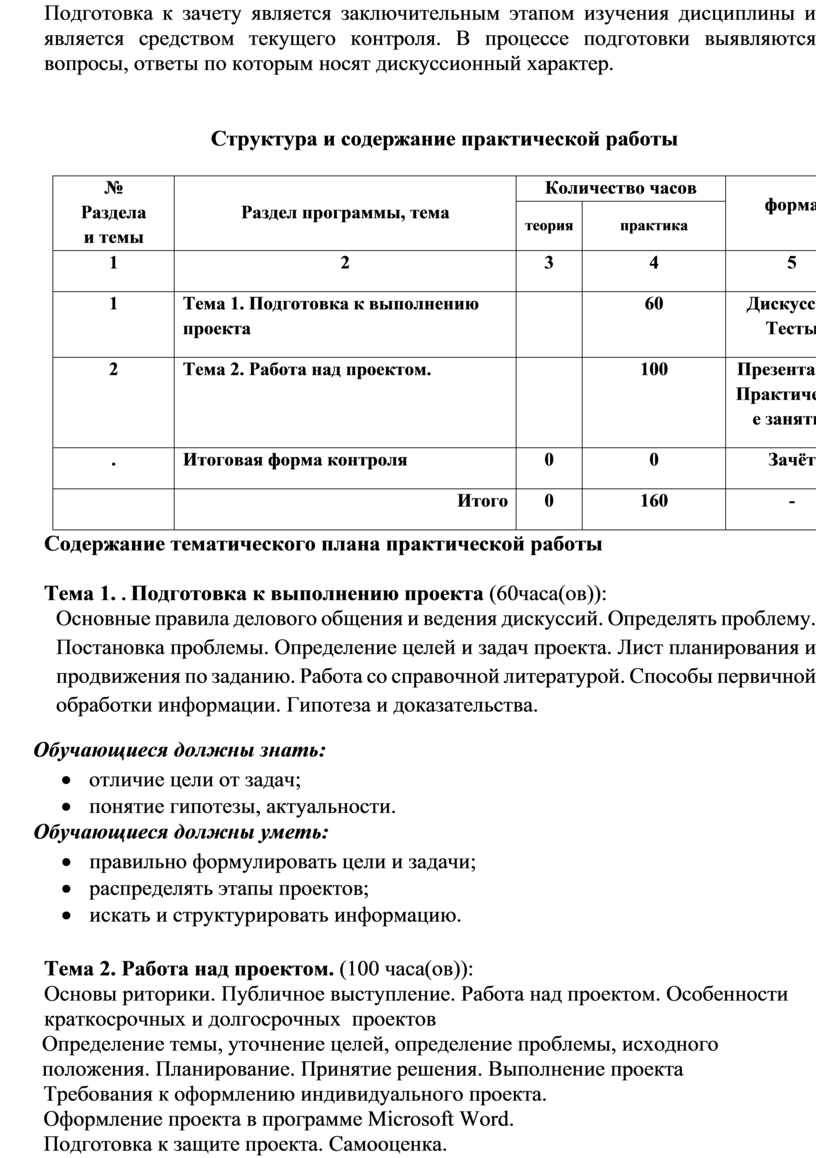 Структура и содержание практической работы