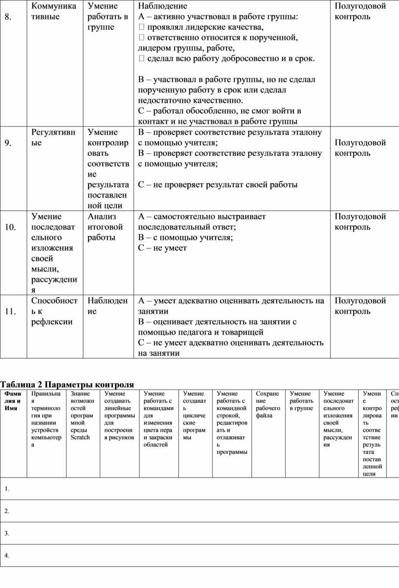 В – участвовал в работе группы, но не сделал порученную работу в срок или сделал недостаточно качественно. С – работал обособленно, не смог войти в контакт и не участвовал в работе группы |