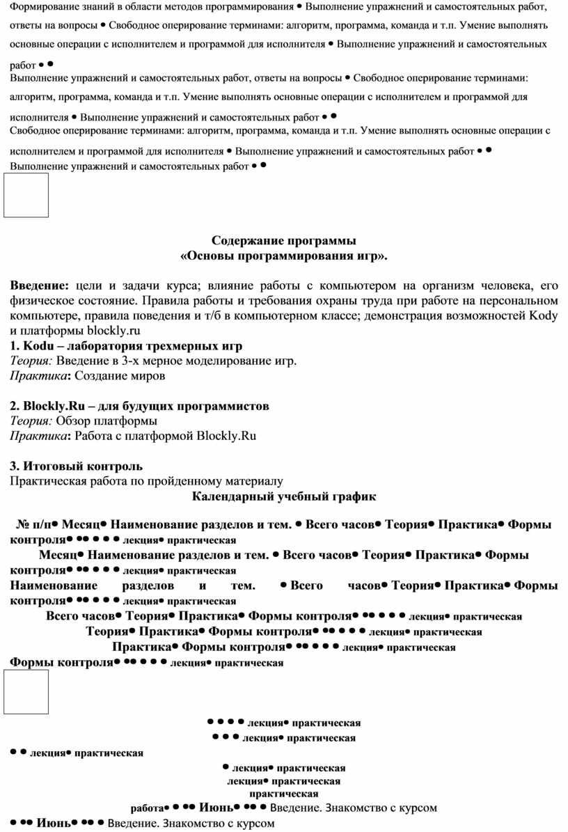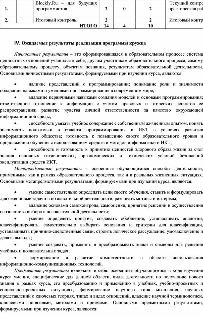 При изучении программы обучающиеся познакомятся с такими понятиями, как исполнитель, команда, система команд исполнителя, алгоритм, программа, язык программирования, научатся создавать простейшие 3-хмерные игры, с использованием Kodu – лаборатория трехмерных игр, и строить алгоритмы и программы, используя платформу blockly.ru.