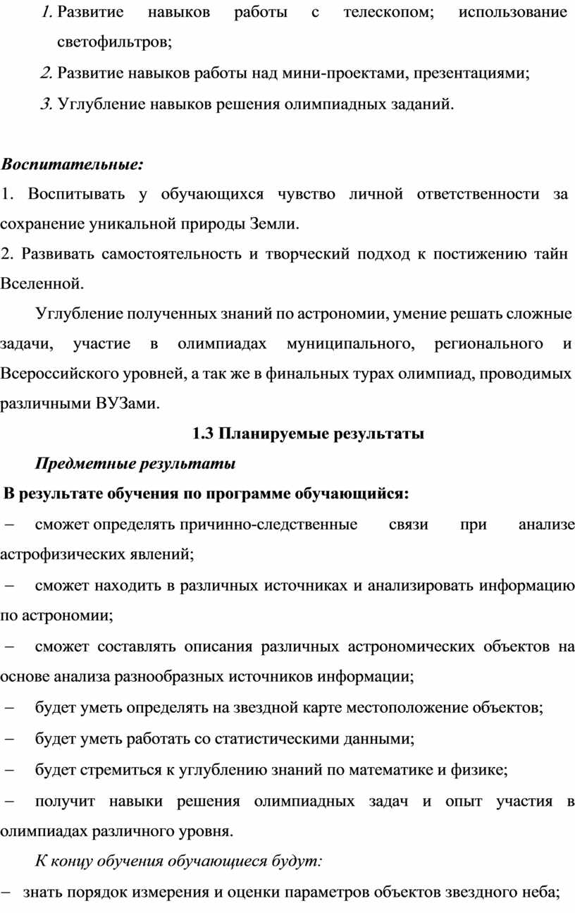 Дополнительное образование дает возможность изучать астрономию, основываясь на знаниях, приобретенных школьниками при изучении школьных курсов естествознания, физики, математики и географии, формируя, таким образом, более полное и законченное представление об окружающем их мире. В этом и заключается актуальность данной программы.