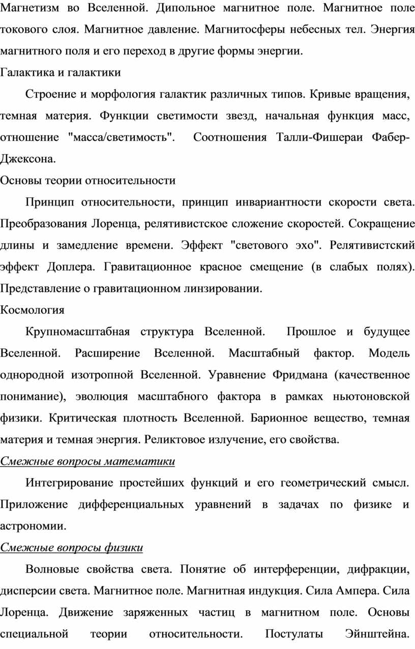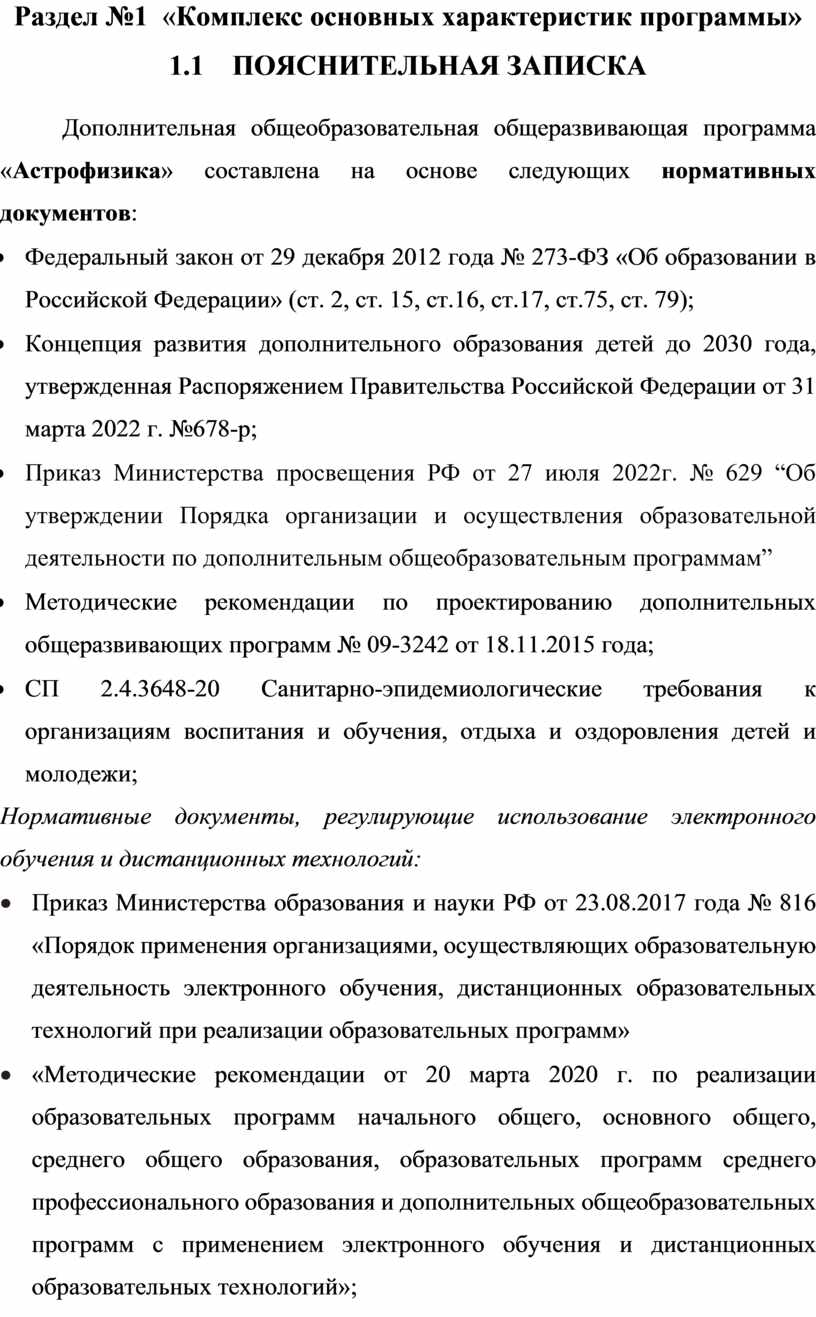 Дополнительная общеобразовательная общеразвивающая программа «Астрофизика» составлена на основе следующих нормативных документов: