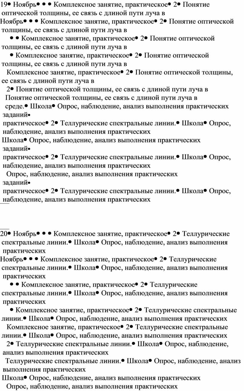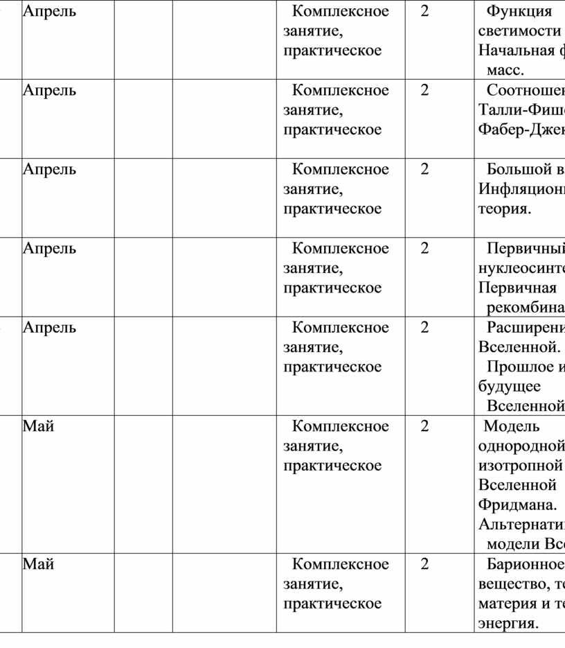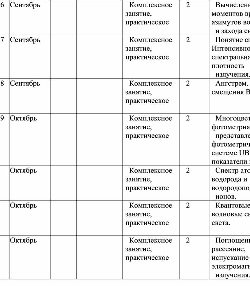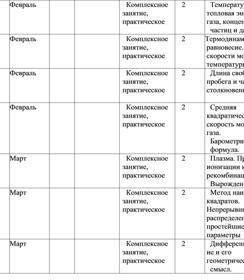 Тип занятия: комбинированные, теоретические, практические, контрольные, тренировочные.