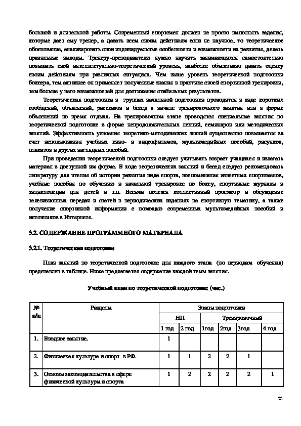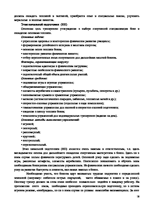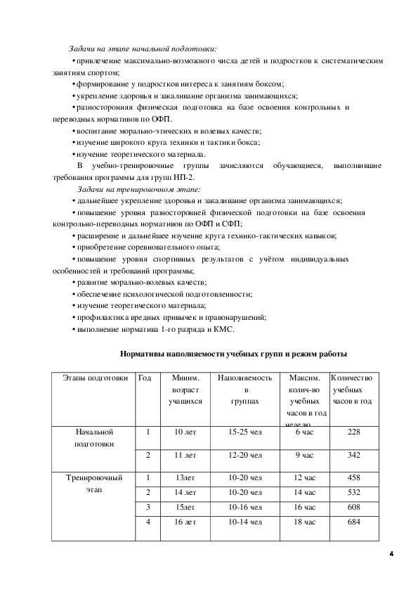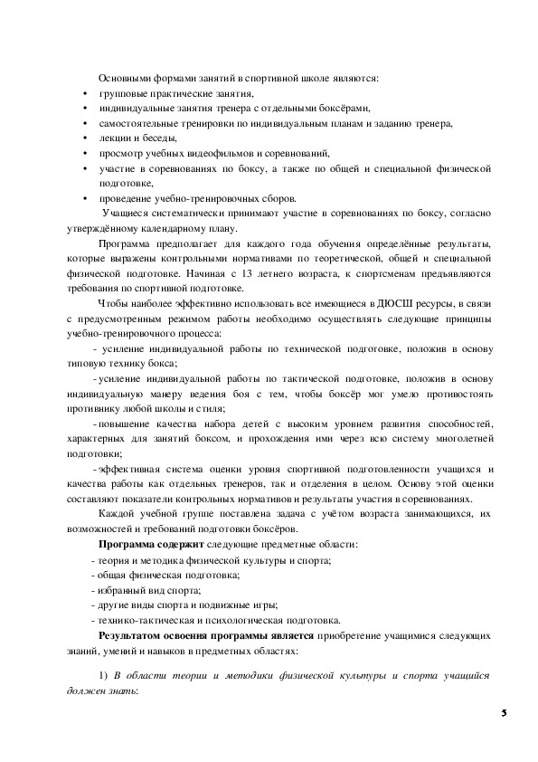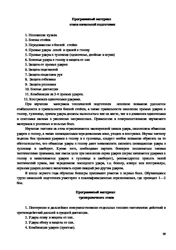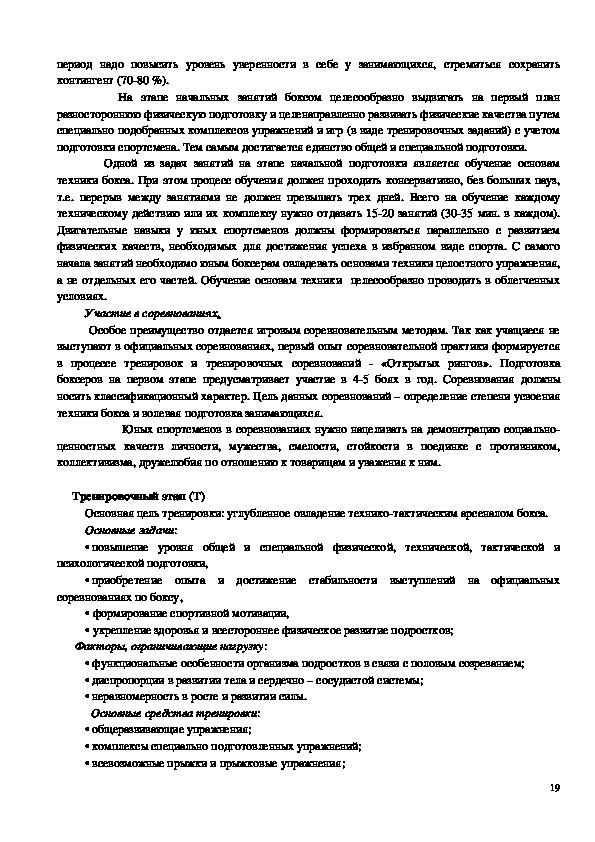 содержание тренировочного и воспитательного процессов по виду спорта бокс МБУ ДО