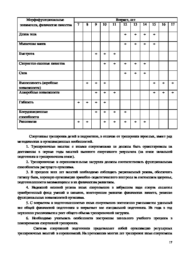 подготовки, индивидуальных особенностей юного спортсмена, вариативность программного