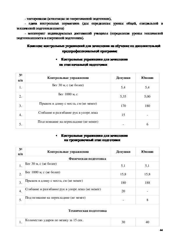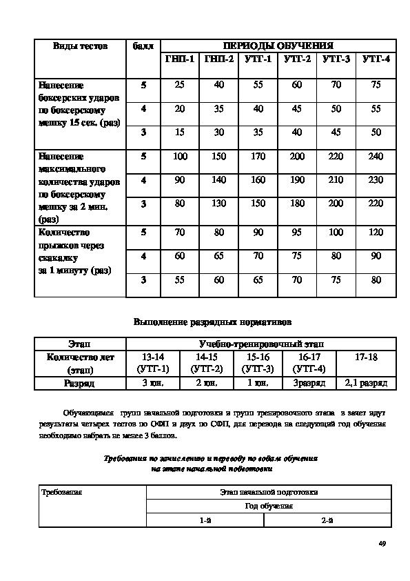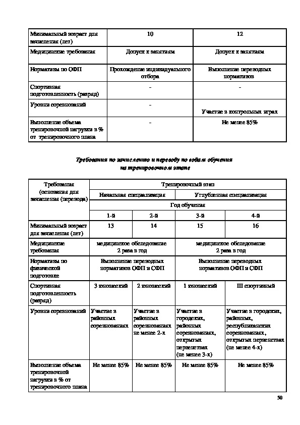 тренировки от начальной подготовки до тренировочного этапа.