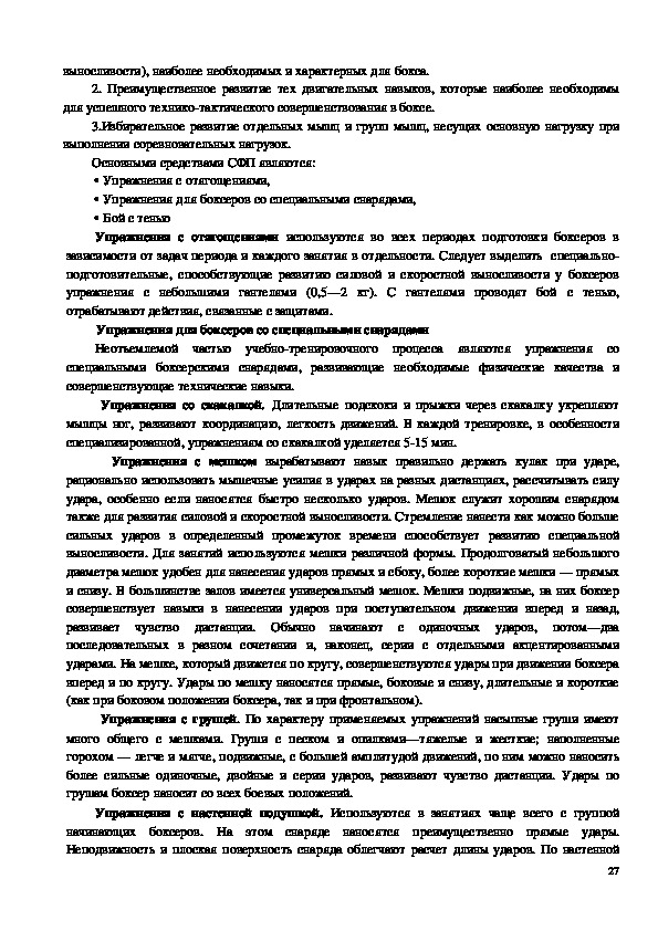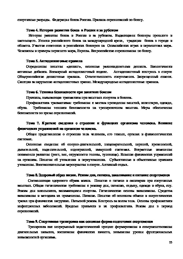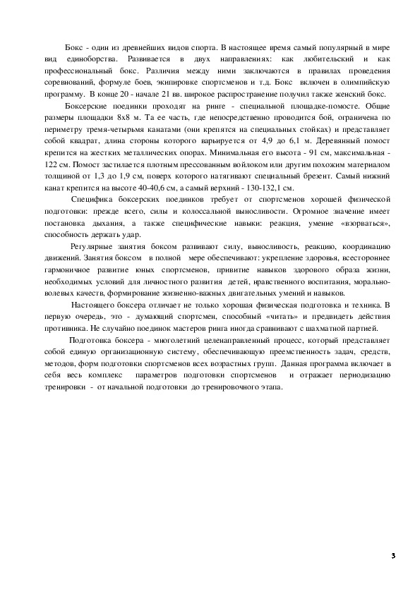 гигиены и других дисциплин. Для таких современных единоборств, как, бокс, характерен очень