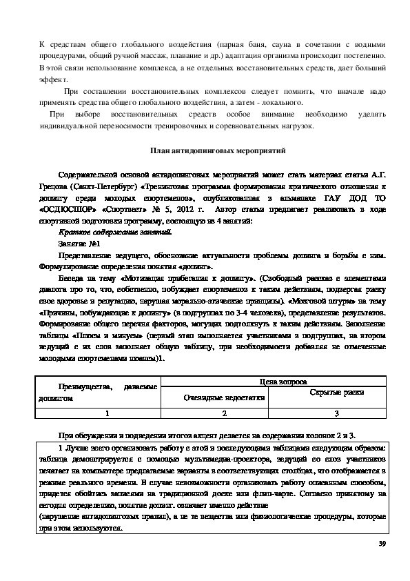 осуществления всестороннего воспитания спортсменов.