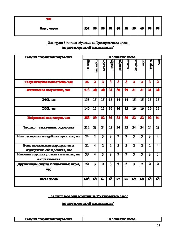 программного материала по этапам обучения для обеспечения в многолетнем тренировочном