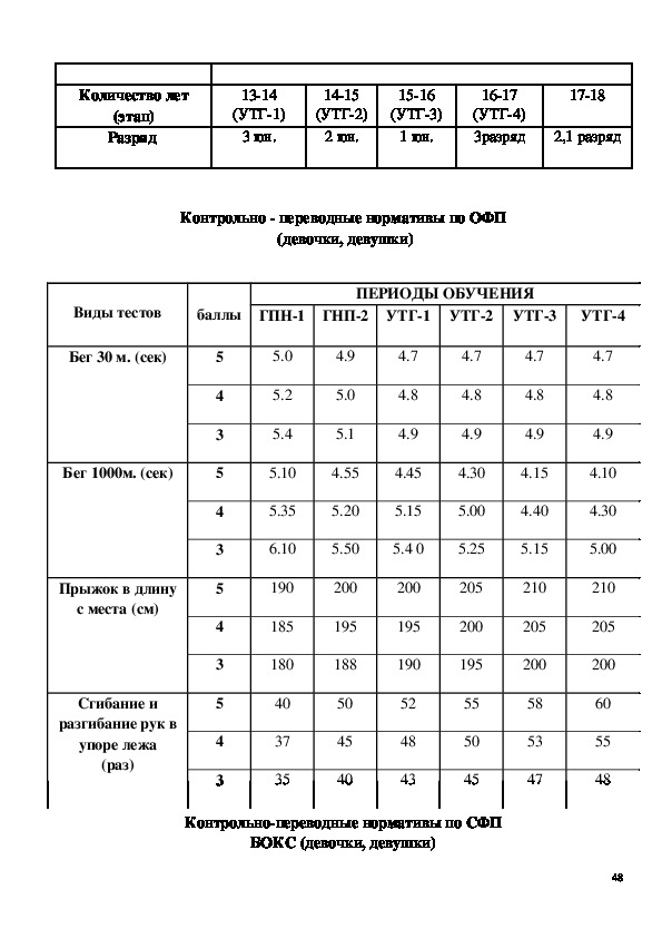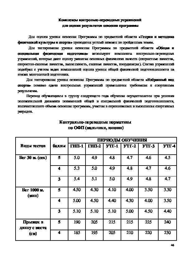 переводных нормативов по ОФП.