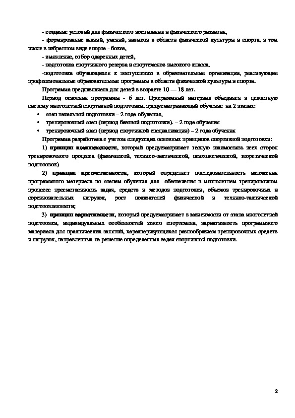 систему многолетней спортивной подготовки, предусматривающий обучение на 2 этапах: