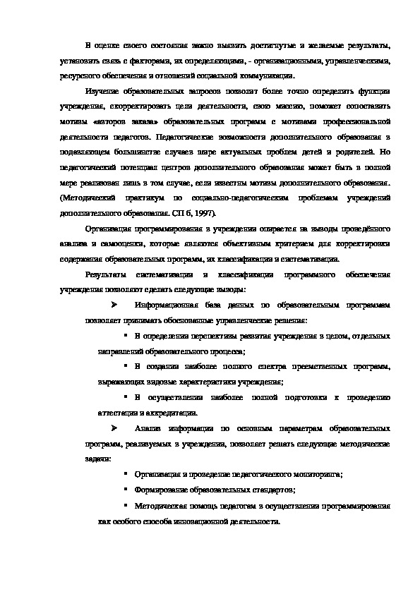 собственной программе и отдельному педагогу, и учреждению в целом. Преобладание