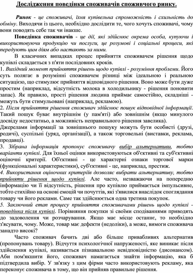 Ринок - це споживачі, їхня купівельна спроможність і схильність до обміну. Виходячи із цього, необхідно дослідити те, чого хочуть споживачі, чому вони поводять себе так чи інакше.