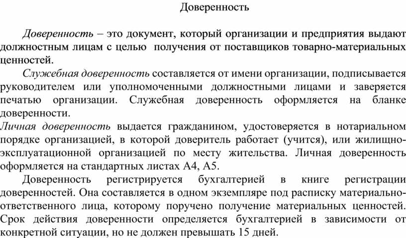 Доверенность – это документ, который организации и предприятия выдают должностным лицам с целью получения от поставщиков товарно-материальных ценностей.