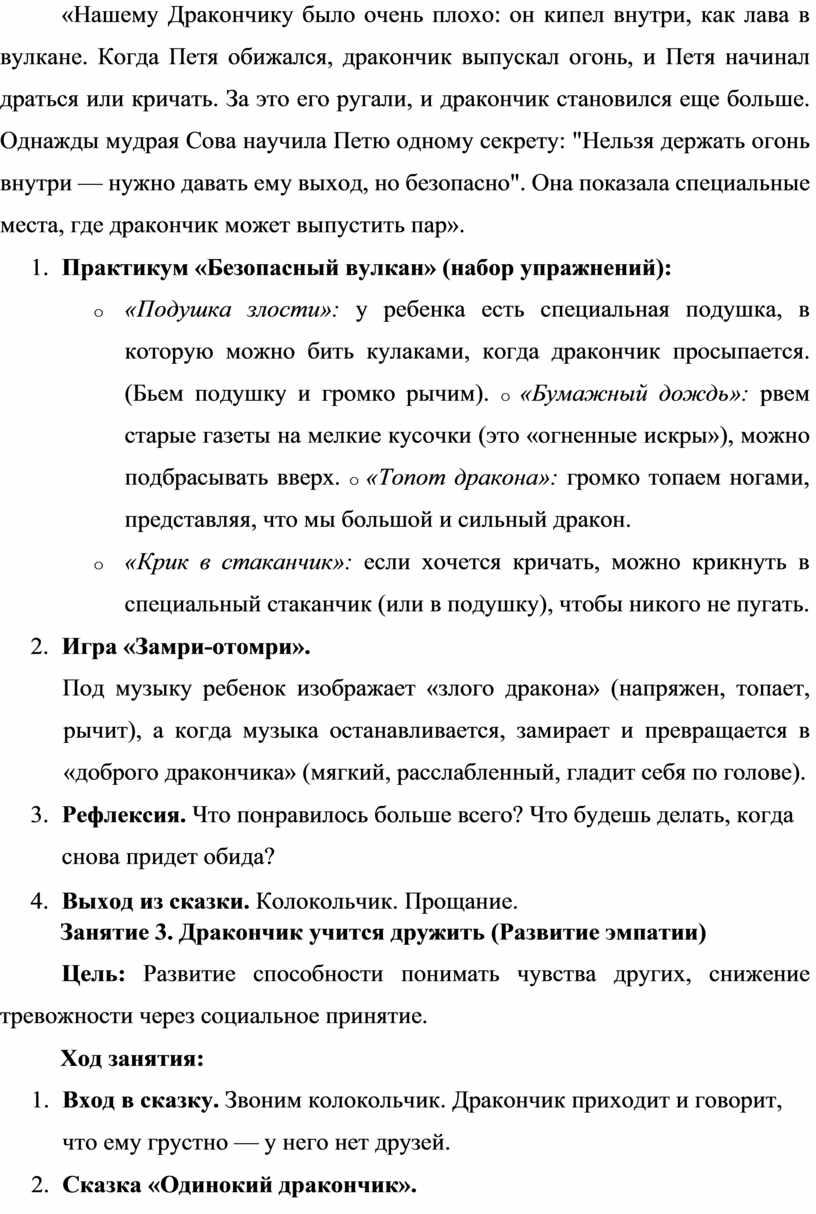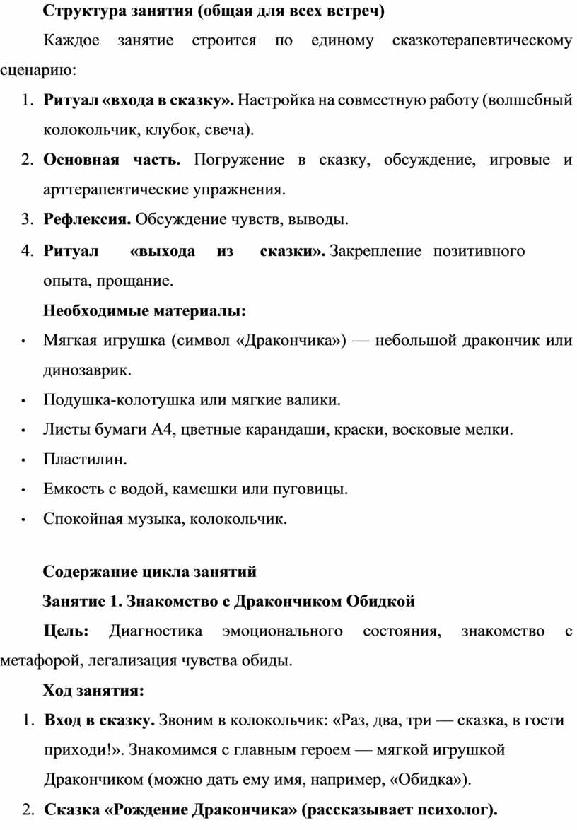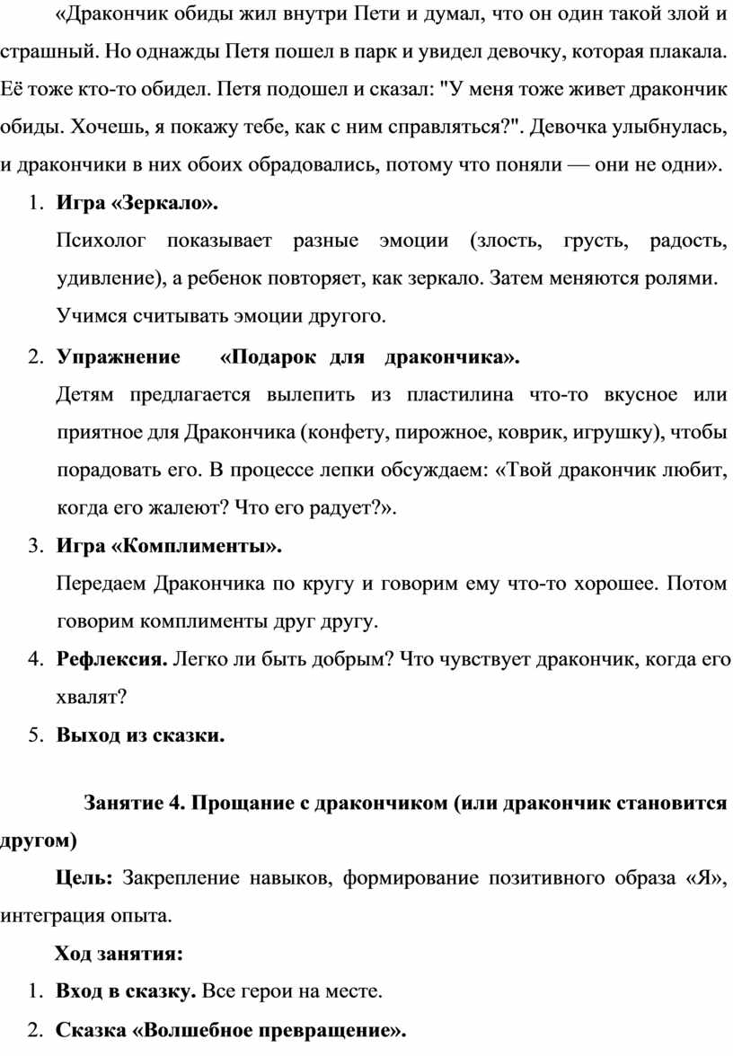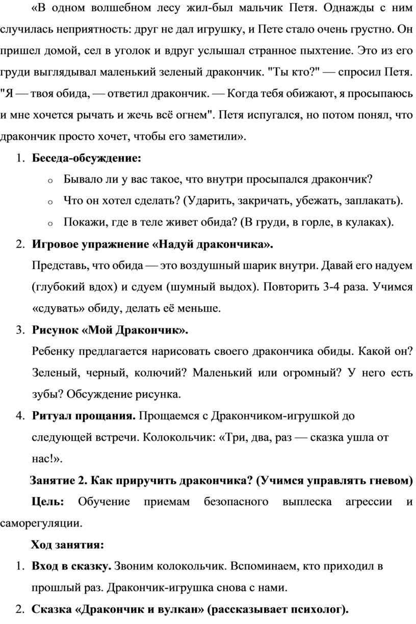 «Дракончики обиды»: методическая разработка по сказкотерапии