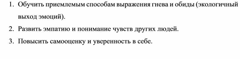 3. Обучить приемлемым способам выражения гнева и обиды (экологичный выход эмоций).