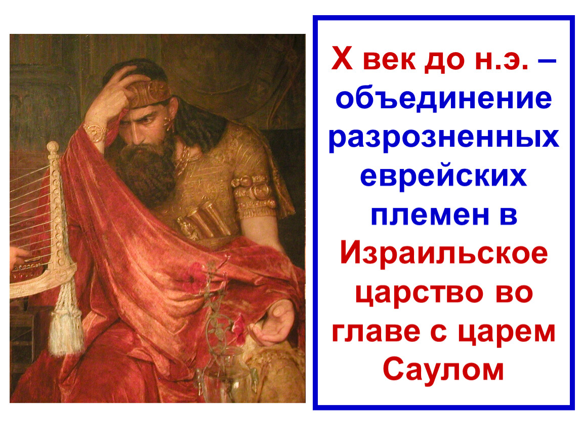 Х век до н.э. – объединение разрозненных еврейских племен в Израильское царство во главе с царем Саулом