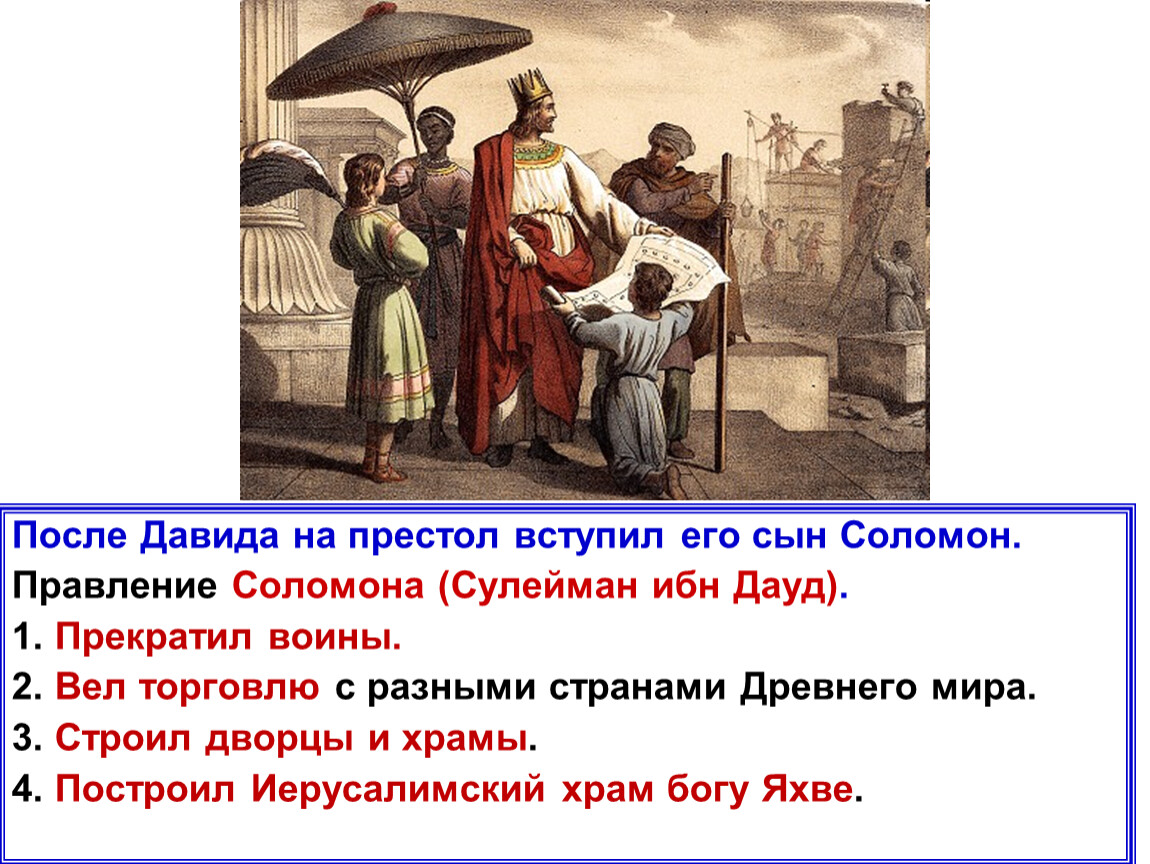 После Давида на престол вступил его сын Соломон.