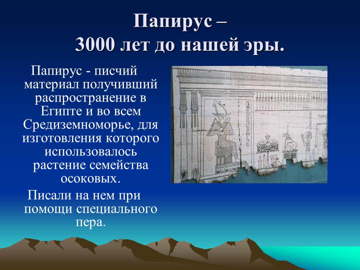 Папирус – 3000 лет до нашей эры.