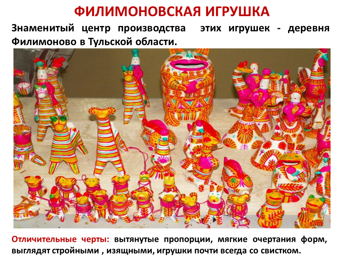 Знаменитый центр производства этих игрушек - деревня Филимоново в Тульской области.
