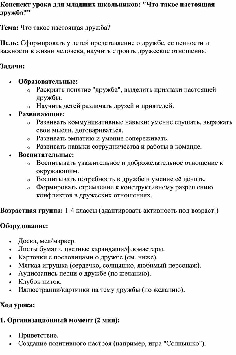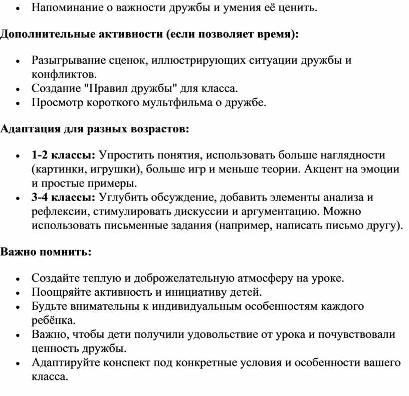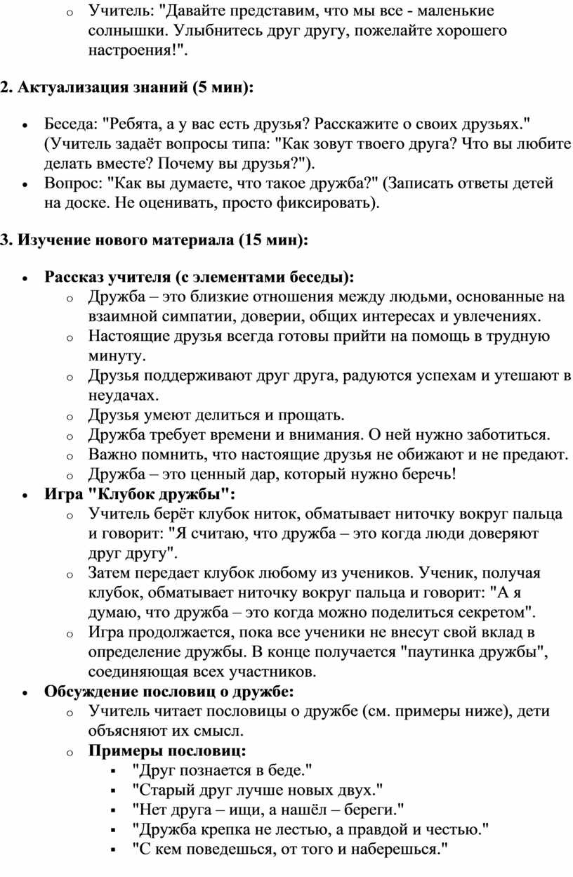 о дружбе, её ценности и важности в жизни человека, научить строить дружеские