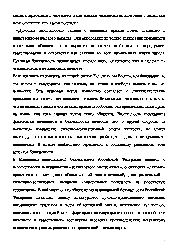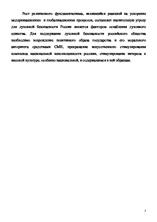 единства. Для поддержания духовной безопасности российского общества