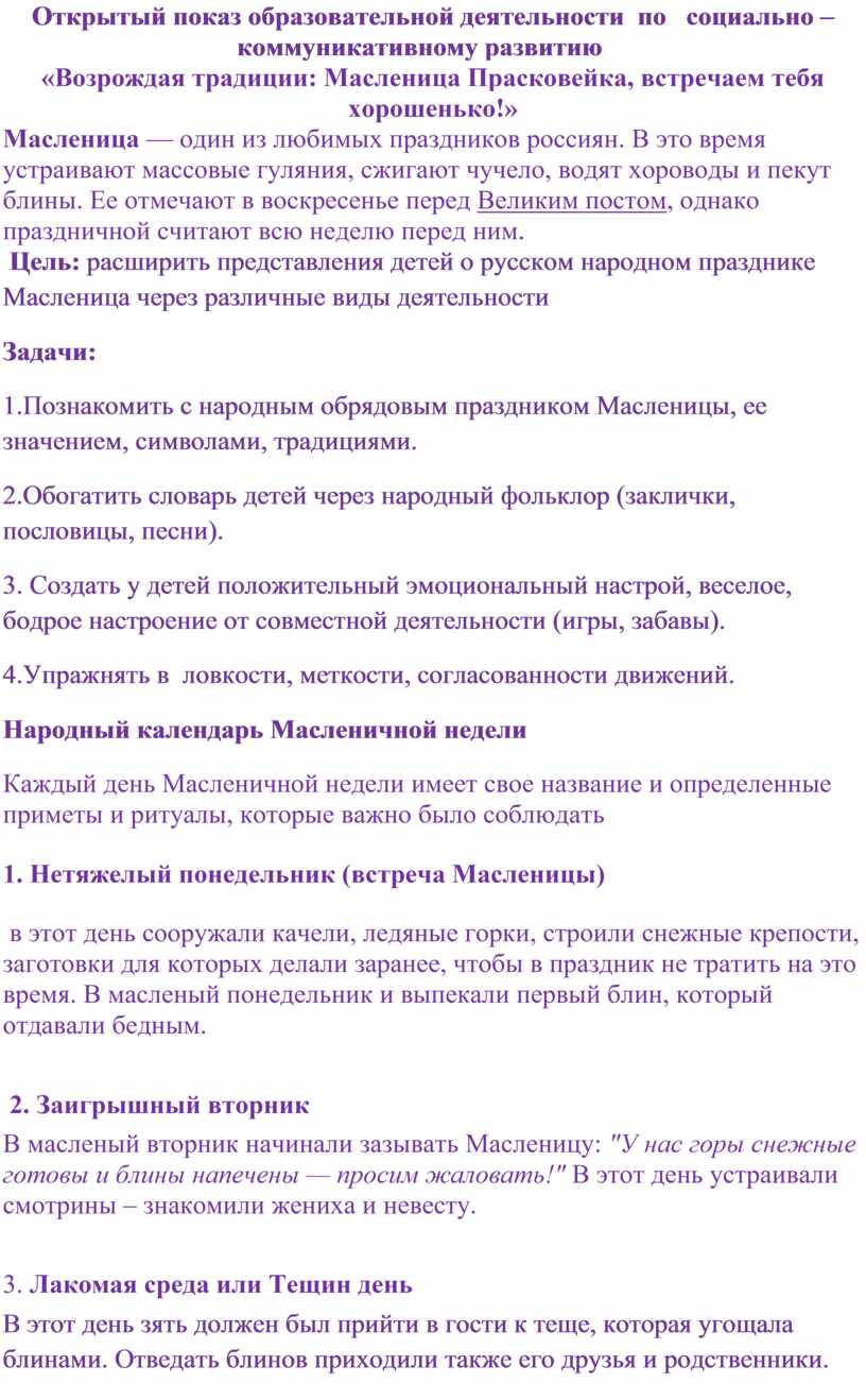 1.Познакомить с народным обрядовым праздником Масленицы, ее значением, символами, традициями.