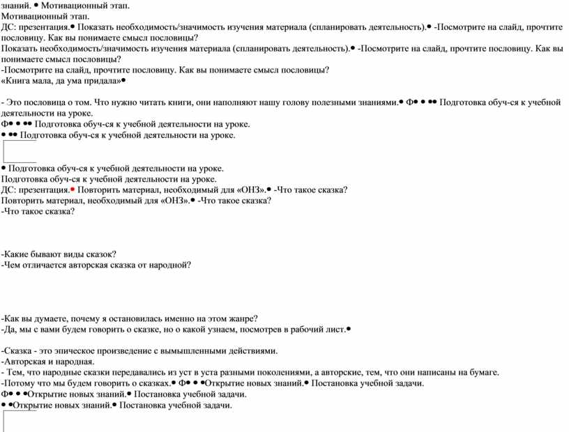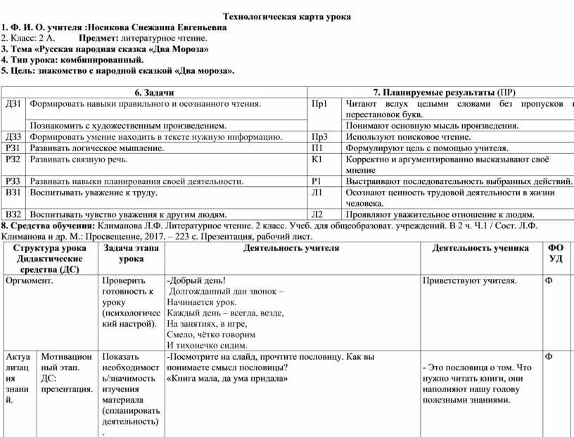 Технологическая карта урока