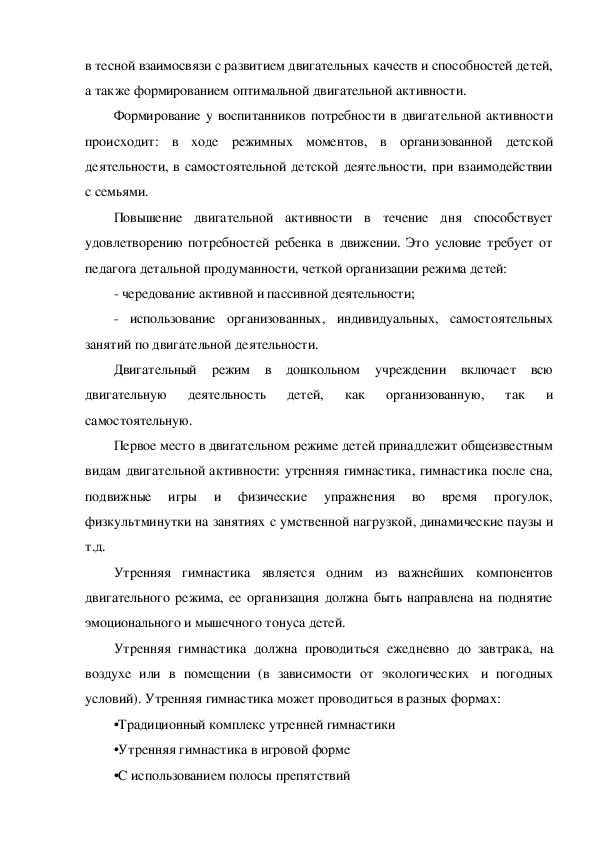 условий). Утренняя гимнастика может проводиться в разных формах: